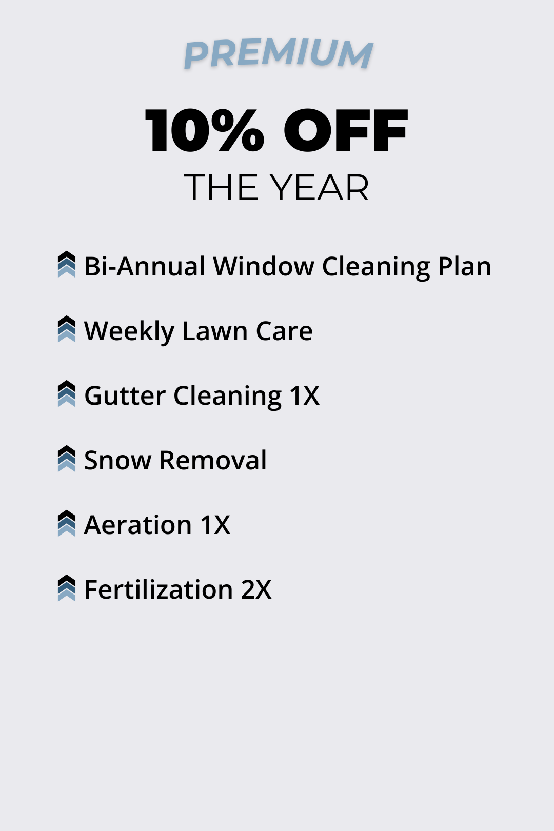 Take the hassle out of home care with Elevate’s 1-Year Bundle Program. Get all your services in one place and lock in 10% savings all year long. Whether it’s window cleaning, gutter care, snow removal, or lawn work—we’ve got you covered.